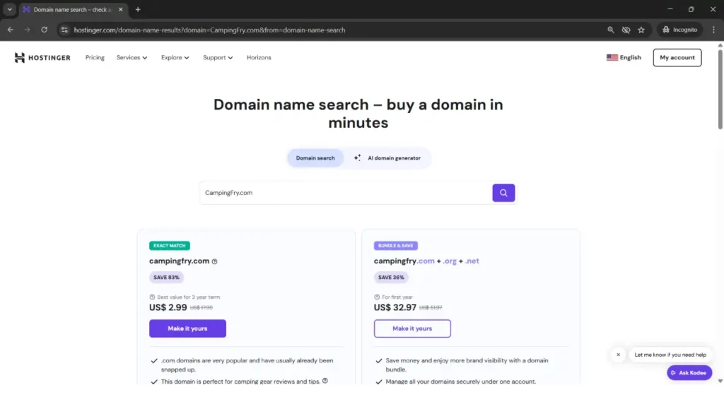 ๐ฏ Buy CampingFry.com now on Hostinger for $2.99: