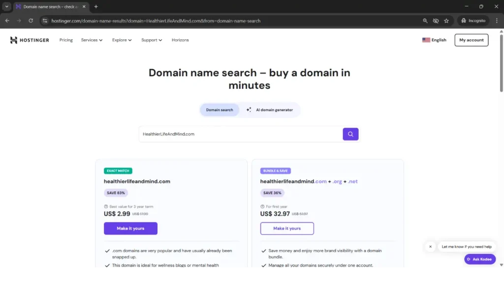 👉 Register HealthierLifeAndMind.com Now on Hostinger