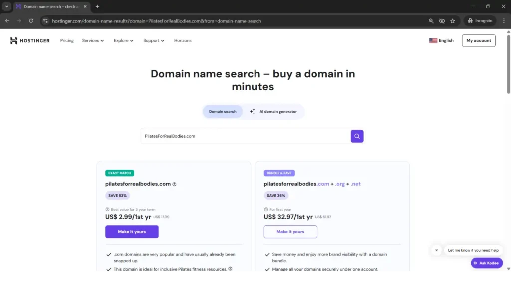 👉 Claim the domain now on Hostinger before another instructor or marketer does.